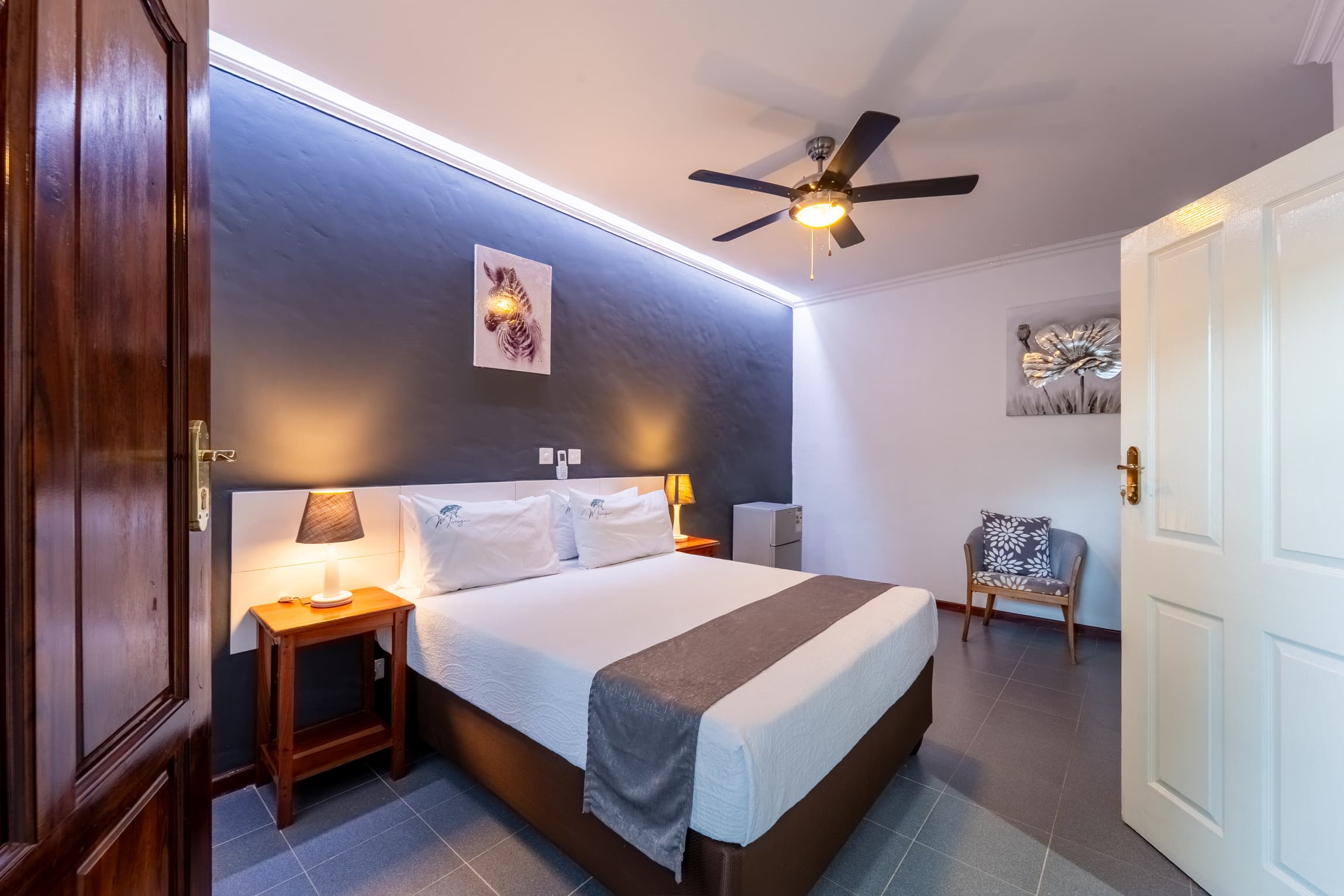 - - Spacious bedroom with king-size bed and plush linens